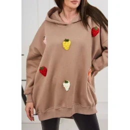 Zateplená mikina s jahodovým motivem tmavě béžová