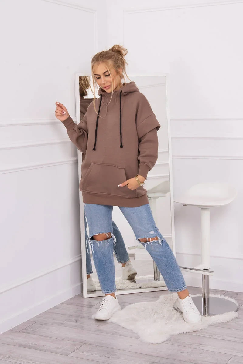 Zateplená mikina s polovičním zipem mocca