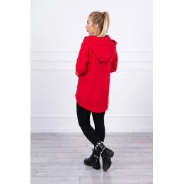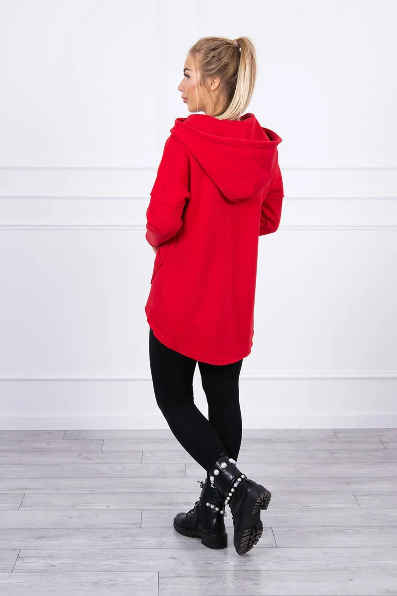 Zateplená mikina s prodlouženými zády a kapsami červená