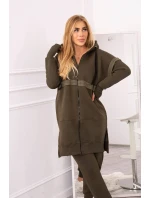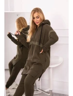 Představujeme vám sadu mikiny a kalhot. Mikina má kapuci a kapsy. Mikina se zapínáním na zip, boční rozparky ve spodní části. Kalhoty mají široký elastický pas a žebrované nohavice. Sada je vyrobena z izolovaného materiálu. Velikost je univerzální a vyhovuje dámám velikosti S, M nebo L.