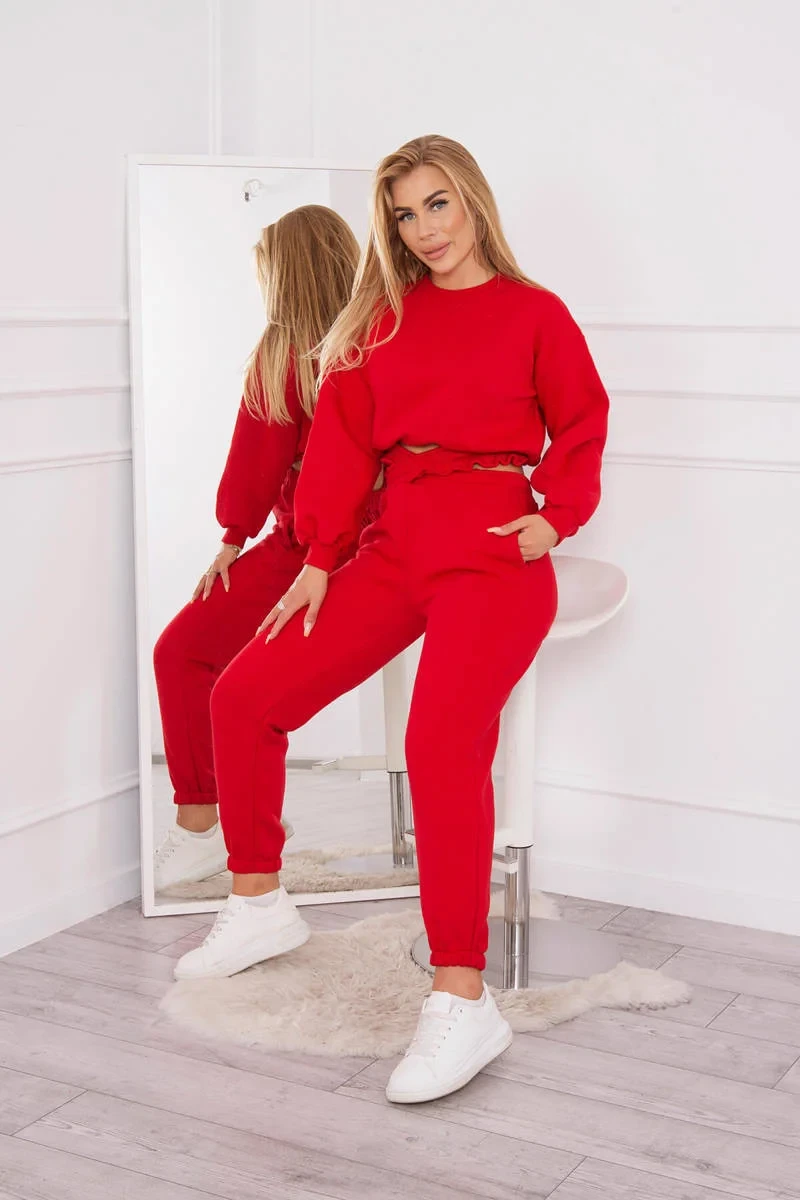 Zateplená souprava s krátkou mikinou červená
