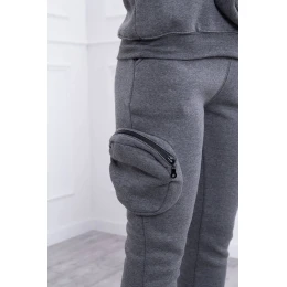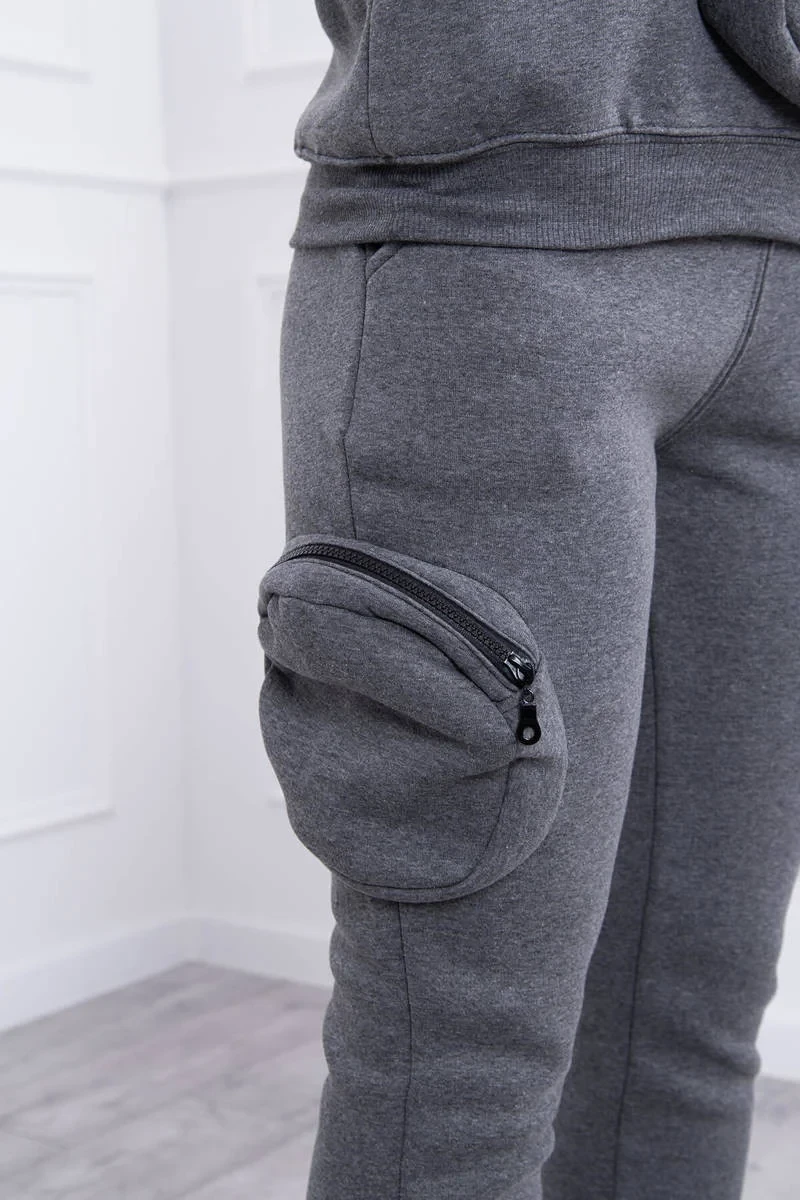 Zateplená souprava s ozdobnou kapsou grafitová melanž
