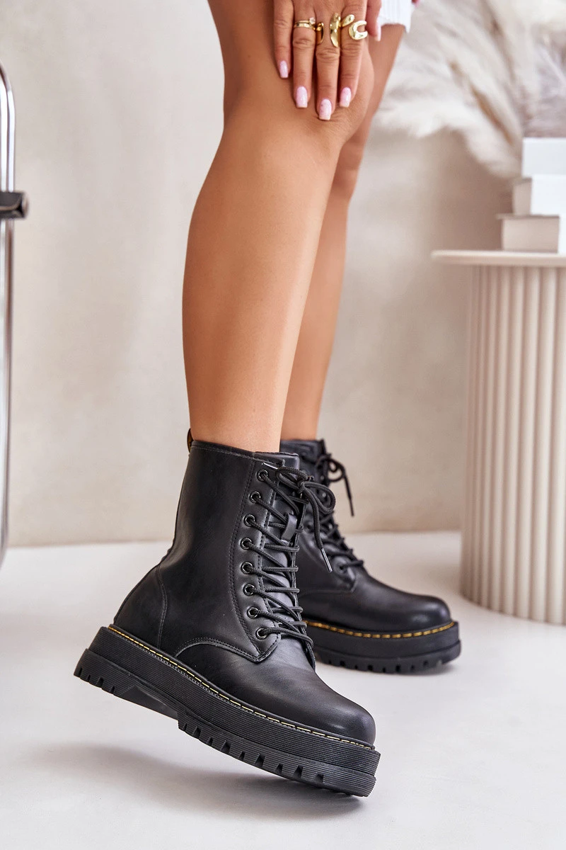Zateplené botky workerky z eko kůže na zip černé Naleli