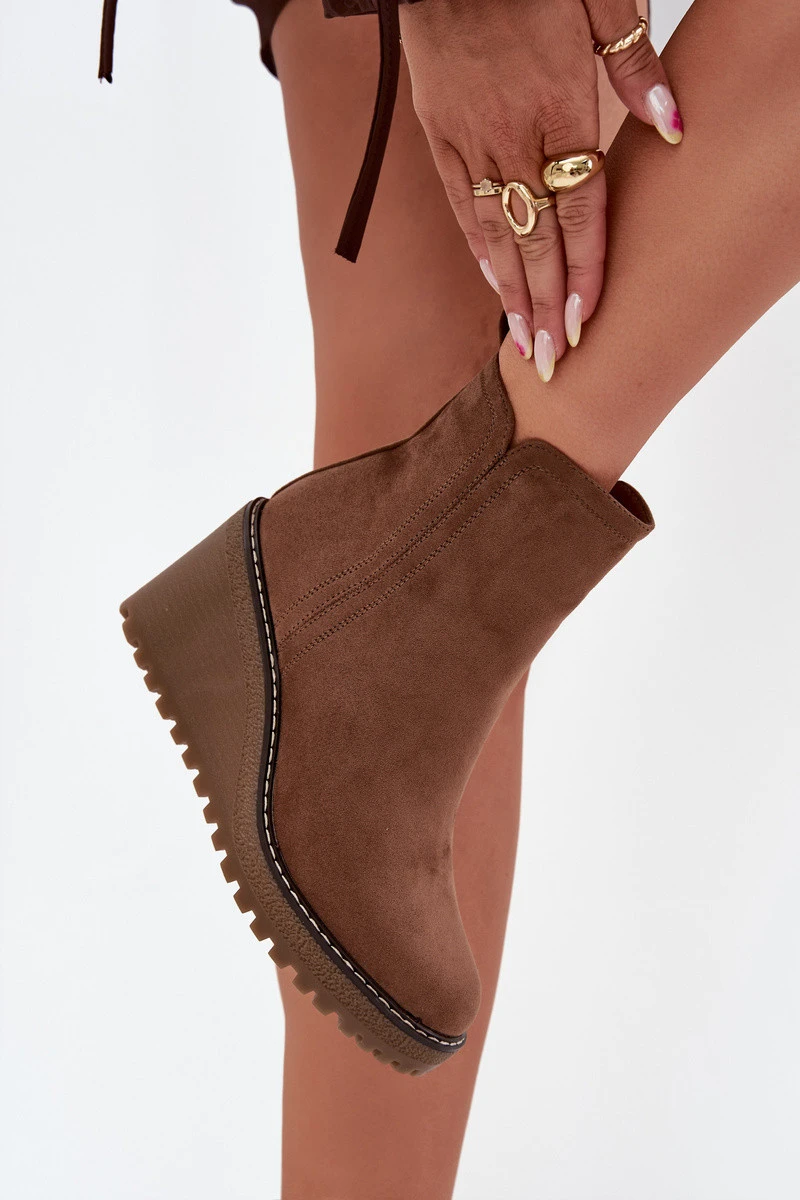 Zateplené boty na platformě z eko semiše hnědé Mavona
