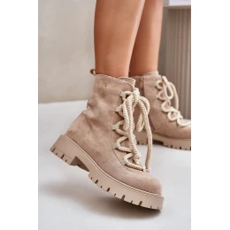 Zateplené boty z eko semiše na zip světlobéžové Caellita
