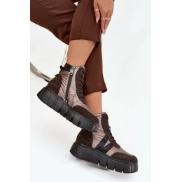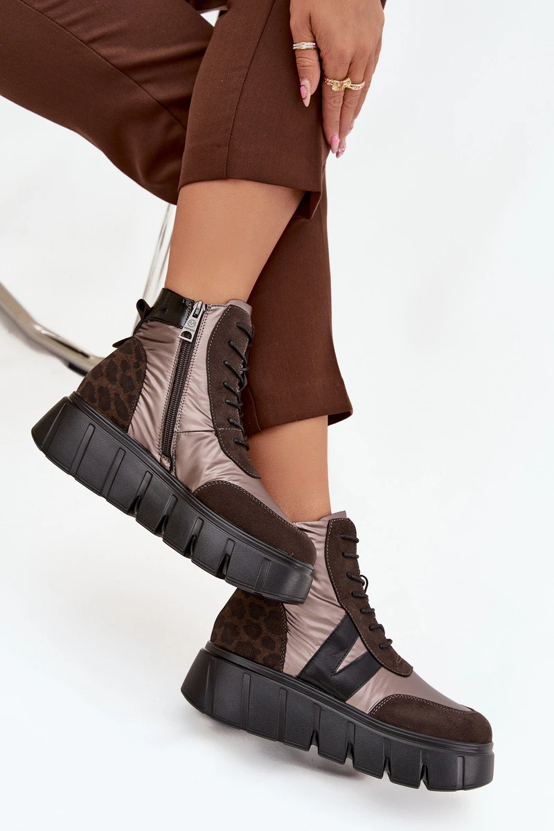 Boty jsou osazeny na pevné platformě, která zajišťuje komfort a stabilitu při nošení. Model kombinuje šněrování se zapínáním na zip, což usnadňuje obouvání a dokonalé přizpůsobení boty noze. Zateplený vnitřek měkkou podšívkou poskytuje teplo a pohodlí, díky čemuž jsou boty ideální pro podzimní a zimní sezónu.
