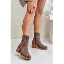 Klasické dámské boty vyrobené z eko semiše. Umístěné na podpatku ve tvaru sloupu. Špičky jsou zaoblené. Tento model se vyznačuje prošíváním na svršku a malým detailem. Vnitřek je zateplen měkkým obuvnickým rounem, ideální na chladnější dny. Při výběru velikosti se řiďte tabulkou velikostí.