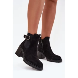 Zateplené dámské boty na podpatku s ozdobnou sponou černé Melara