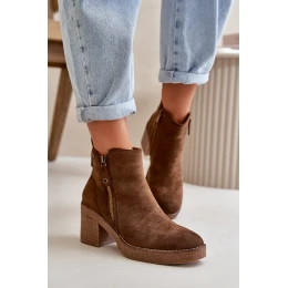 Zateplené Dámské Boty Na Podpatku Z Ekologického Zamsu Tmavě Hnědé Velarilla