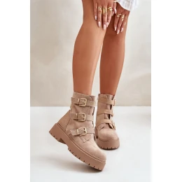 Zateplené dámské boty se sponami béžové Tiaeliana