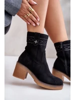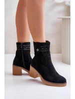 Zateplené Dámské Kotníkové Boty Na Podpatku Černé Vailia