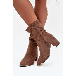 Dámské kotníkové boty vyrobené z ekologické semiše. Stabilní podpatek typu sloupek přidává několik centimetrů na výšce, zároveň zajišťuje pohodlí při nošení. Pozornost také přitahuje vrásčitá horní část obuvi. Skvěle se hodí jak k běžným outfitům, tak i ke elegantním sestavám – ideální k nohavicím, sukním nebo šatům. Při výběru velikosti se řiďte tabulkou velikostí.