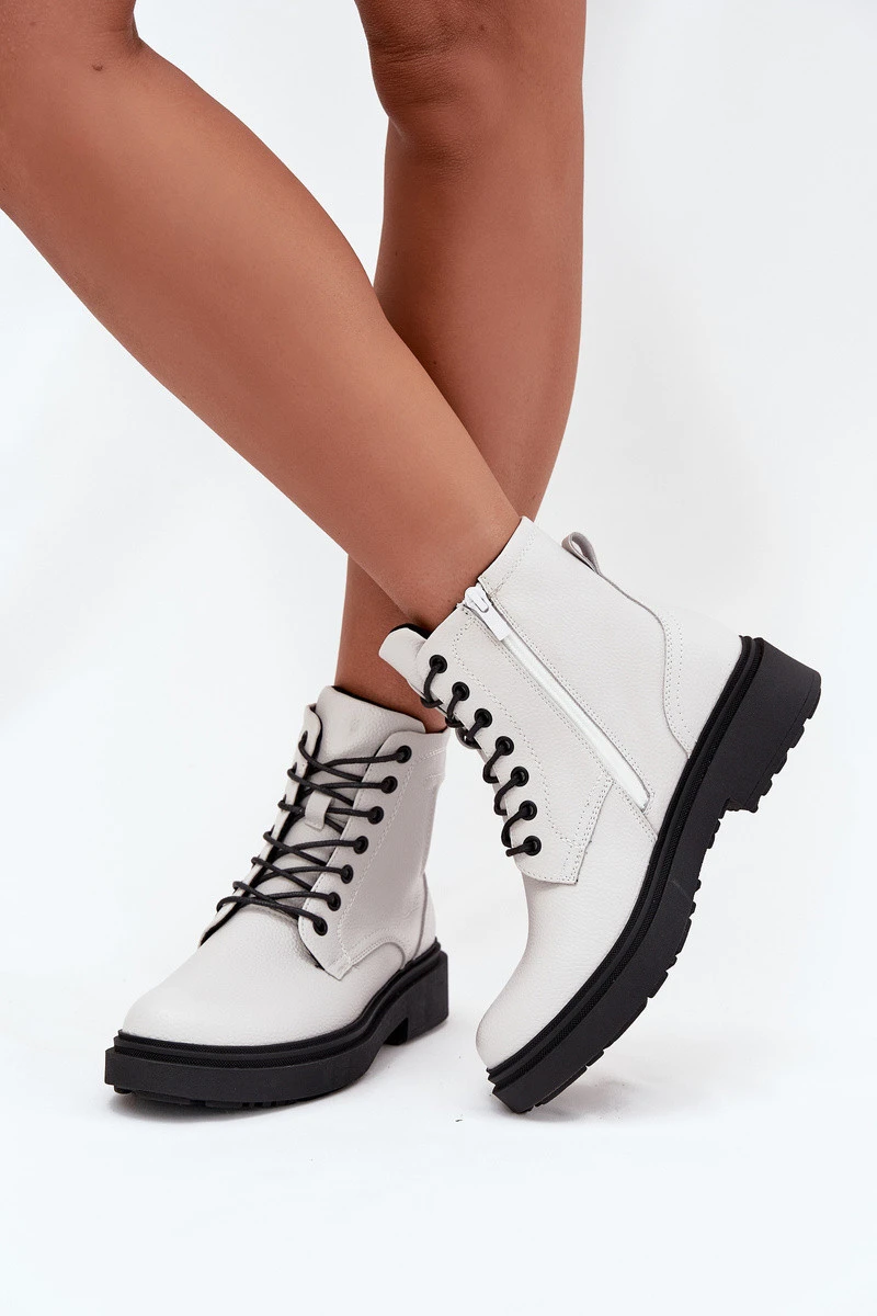 Zateplené dámské kotníkové boty z přírodní kůže Sergio Leone BT25248-S bílé