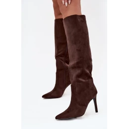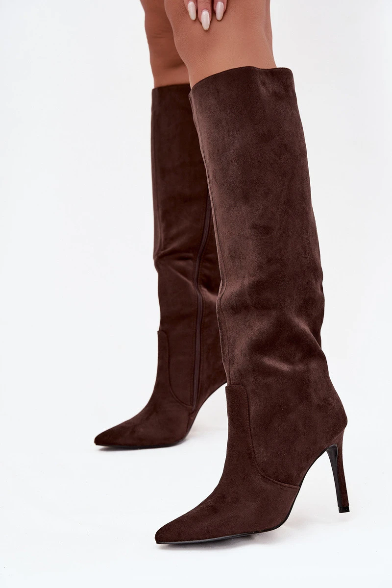 Zateplené dámské kozačky na jehlovém podpatku z eko semiše čokoládové Rosavine