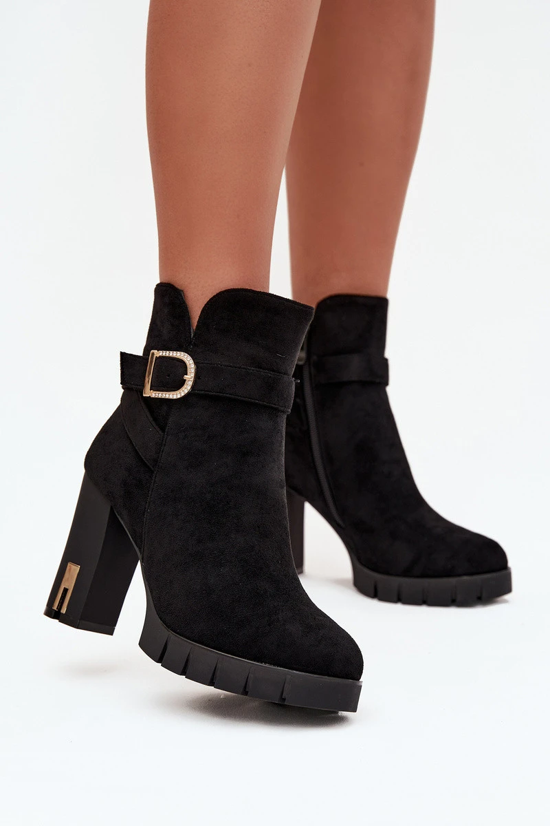 Dámské kotníkové boty vyrobené z eko semiše. Vnitřek je vyplněn obuvní přikrývkou, což zajišťuje tepelný komfort a měkkost při nošení. Boty se zapínají na zip, což usnadňuje jejich obouvání a sundávání. Další výhodou je dekorativní pásek s přezkou, který jim dodává módní charakter a skvěle vypadají v každodenním stylu. Jedná se o univerzální model, který se hodí jak ke kalhotám, tak ke šatům. Při výběru velikosti se řiďte tabulkou velikostí. Při výběru velikosti se řiďte tabulkou velikostí.