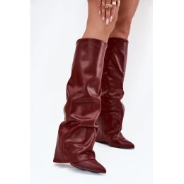 Zateplené dámské kozačky s vytočeným horním lemem na podpatku bordó Elivira