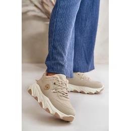 Zateplené Dámské Sportovní Boty Na Šněrování Na Platformě Béžové Bialoa