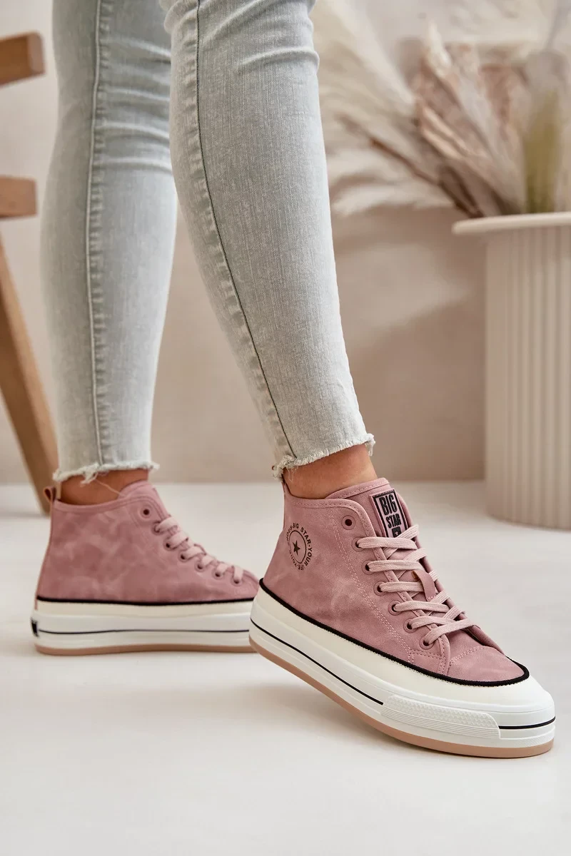 Zateplené Dámské Tenisky Na Platformě Eko Kůže Big Star Růžové