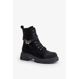 Zateplené Kotníkové Boty Workery s Ozdobou S.Barski Černé