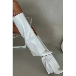 Zateplené kozačky na jehlovém podpatku s ohrnutým svrškem bílé Tamonia