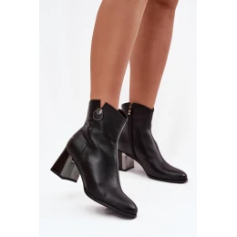 Zateplené kožené boty na podpatku Maciejka K7203-04 Černé