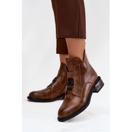 Zateplené kožené dámské kotníkové boty s ozdobným detailem hnědé Briselda