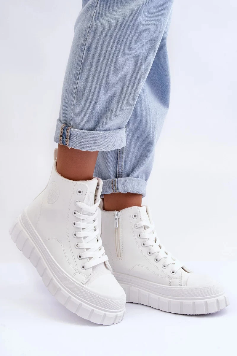 Zateplené kožené tenisky se zipem Big Star MM274624 bílé