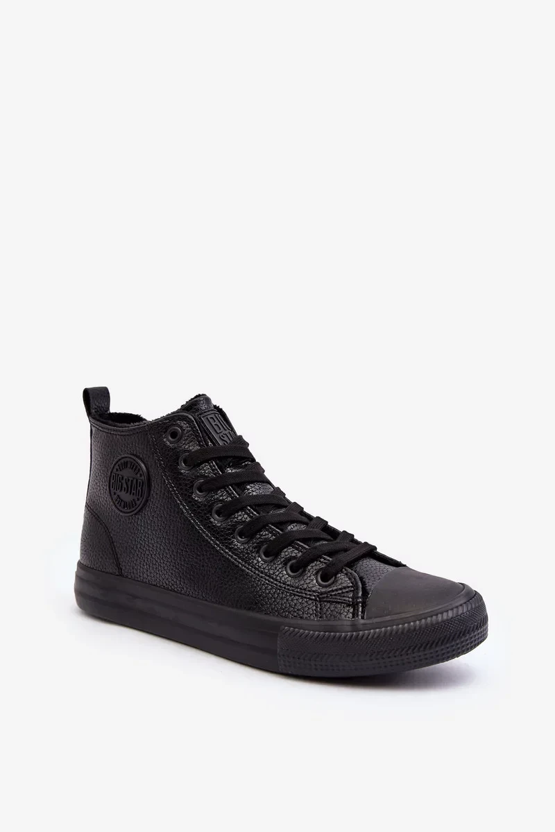 Klasické pánské tenisky značky Big Star s kotníkovým svrškem. Vyrobeno z eko kůže. Namontováno na platformě vyrobené z pryžového materiálu. Tento model se zapíná na zip na boku. Šněrování vpředu. Logo značky na svršku. Vnitřek je zateplen dekou na boty. Vyztužená pata.Při výběru velikosti se řiďte tabulkou velikostí.