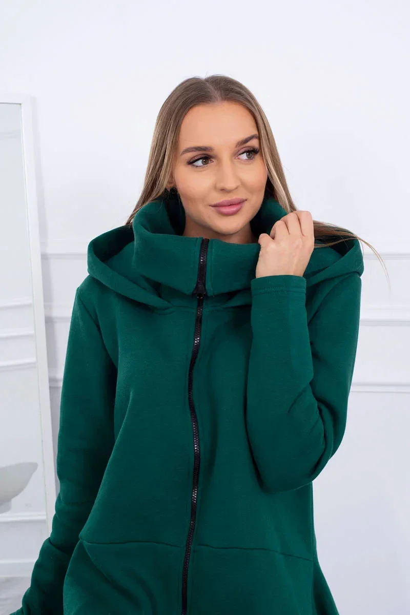 Představujeme vám módní šaty. Šaty mají kapuci, zapínání na zip a delší boky. Ideální každodenní poloha. Šaty jsou vyrobeny z vysoce kvalitní zateplené tkaniny. Velikost je univerzální a vyhovuje dámám, které nosí velikost S, M nebo L.