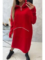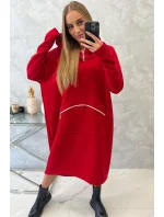 Zateplené šaty s kapucí červené