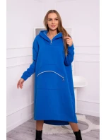 Zateplené šaty s kapucí chrpově modré