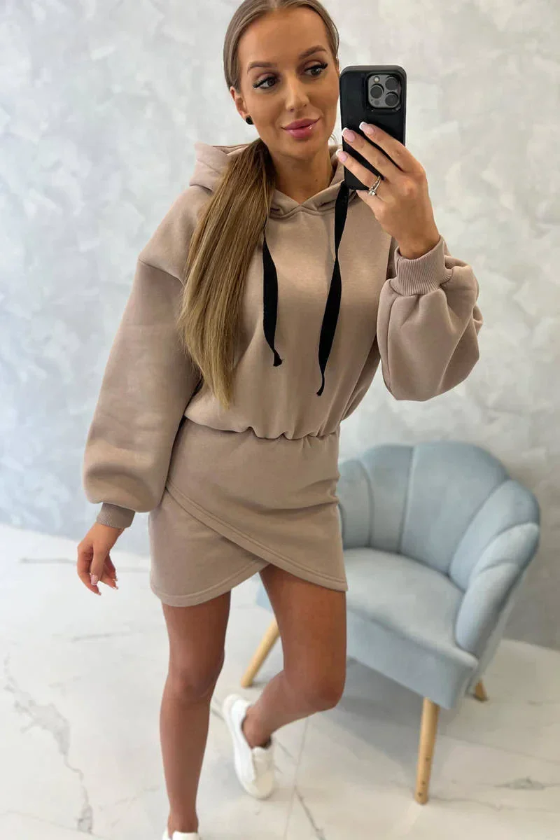 Zateplené šaty s obálkovým dnem tmavě béžové