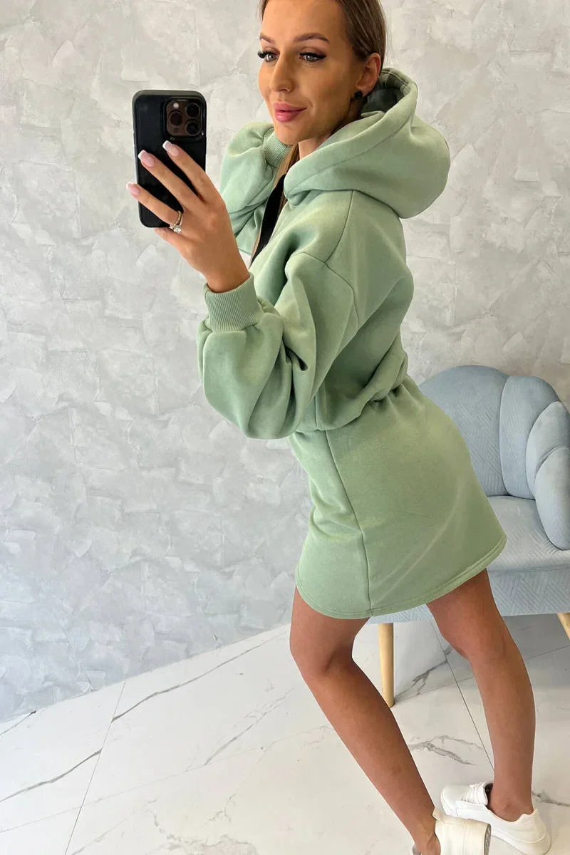 Zateplené šaty s obálkovým dnem tmavě mátové barvy