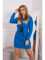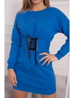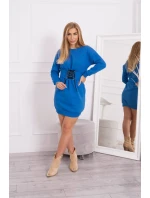 Zateplené šaty s ozdobným páskem chrpově modré barvy