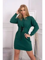 Kožené dámské boty na klínku s ozdobným páskem zateplené Zazoo 60557 tmavě zelené