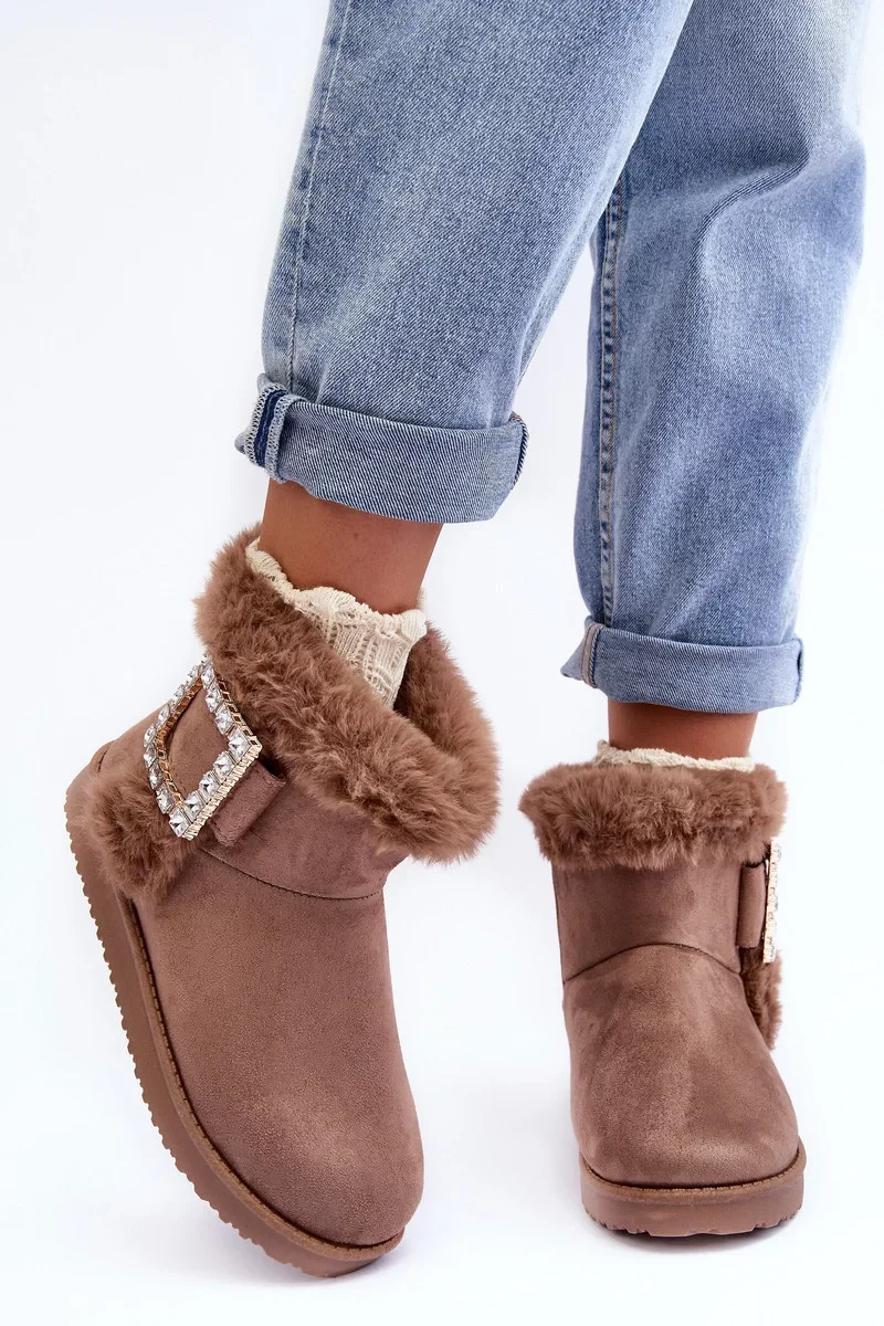 Zateplené sněhule s přezkou, tmavě béžová Dulca