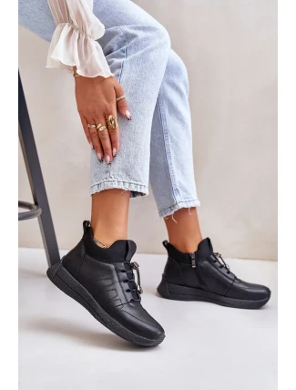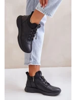 Zateplené Sportovní Kožené Boty Na Zip Černé Artiker 55C0041