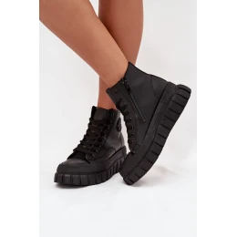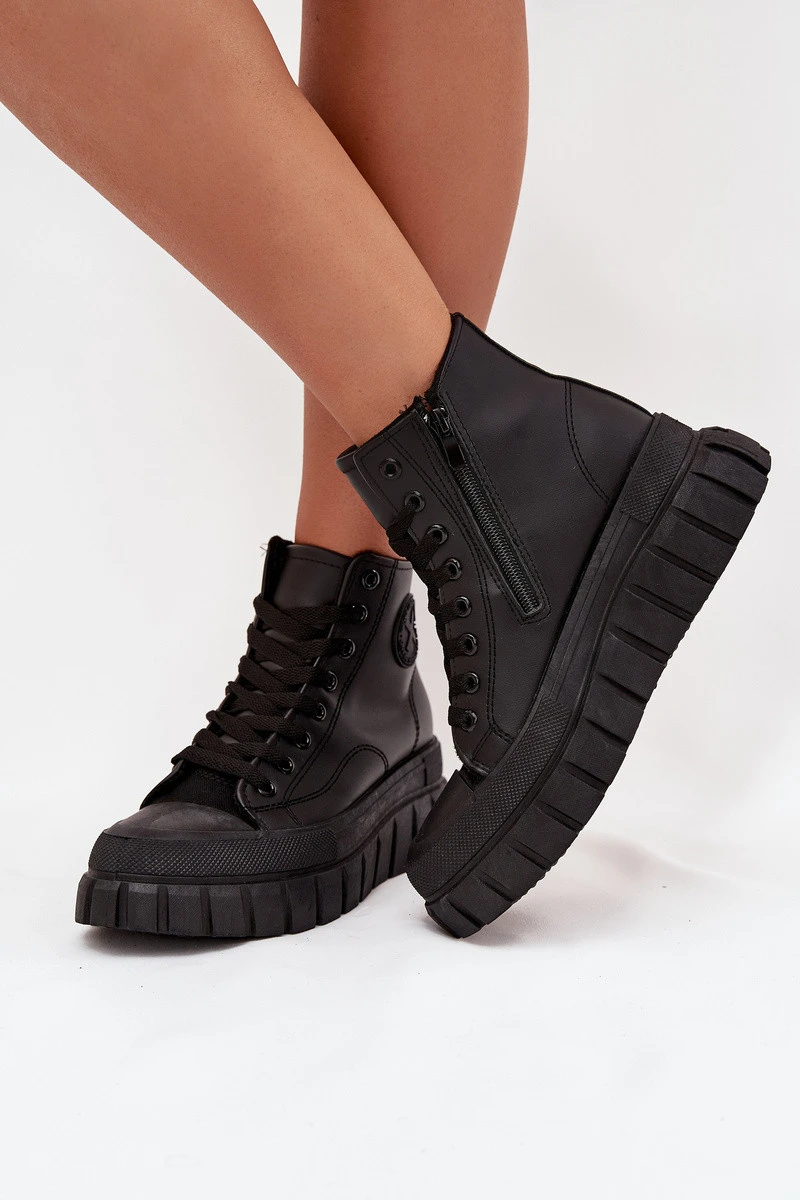 Zateplené Vysoké Tenisky Dámské Na Platformě S Zipem Černé Sarira