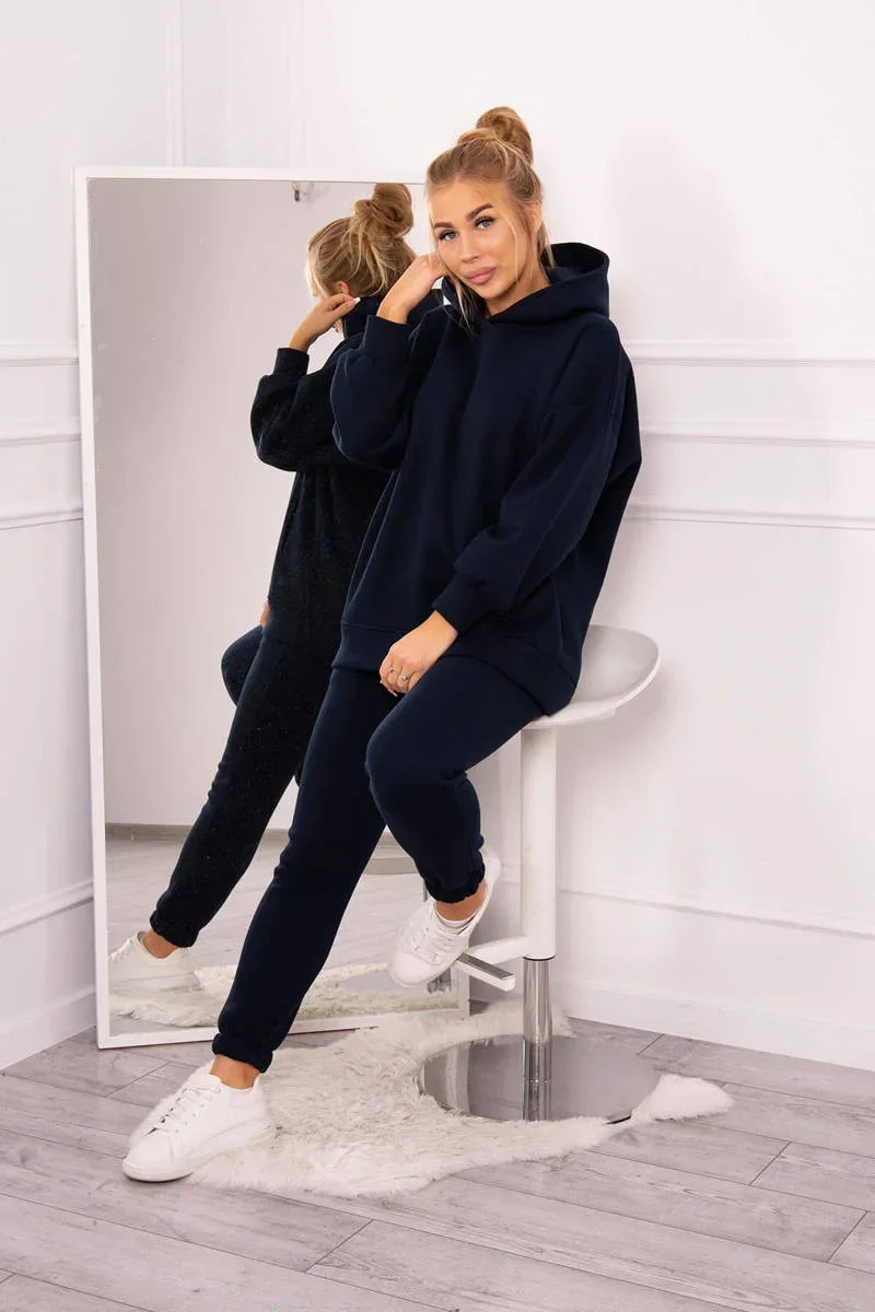 Zateplený set s mikinou s kapucí tmavě modrý