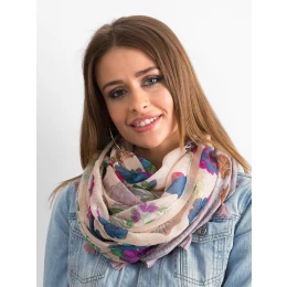 Světle růžová šála s květinovým potiskem.
