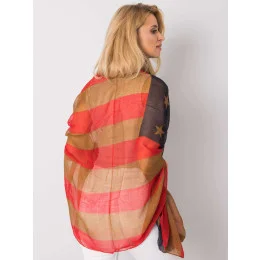 Červenohnědý šátek s potiskem.