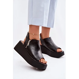 Dámské sandály na platformě kombinují stylový vzhled s pohodlím při nošení. Vyrobené z přírodní kůže, vynikají odolností a komfortem. Zapínání na zip na straně usnadňuje obouvání a zajišťuje dobré přizpůsobení noze. Jedná se o praktický model, který se skvěle hodí do letních stylů – jak na každodenní nošení, tak na elegantnější příležitosti. 36-23,5/37-24/38-24,5/39-25/40-25,5/41-26cm Při výběru velikosti se řiďte tabulkou velikostí.