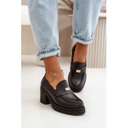 Zazoo 20168 Elegantní Dámské Polobotky Na Podpatku Přírodní Kůže Černá