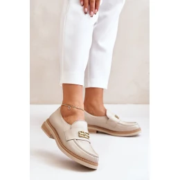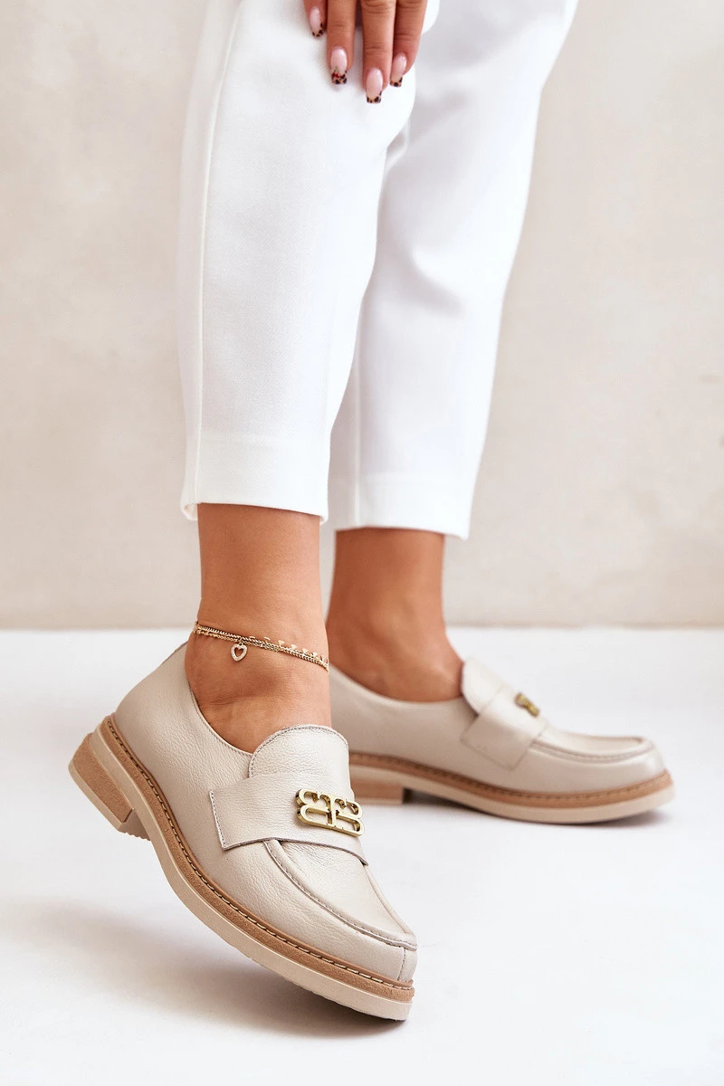 Zazoo 20174 Kožené Elegantní Polobotky Dámské Na Plochém Podpatku Béžové