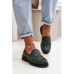 Zazoo 20174 Kožené Elegantní Polobotky Dámské Na Plochém Podpatku Tmavě Zelené
