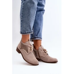 Zazoo 2878 Nízké Dámské Botky se Šněrováním Semišové Bežové
