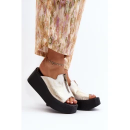 Zazoo 2916 Dámské žabky na masivní platformě se zipem zlaté