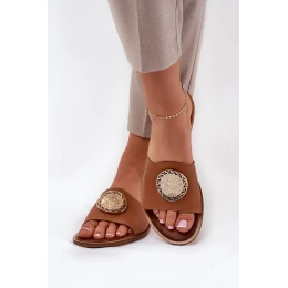 Zazoo 2938 Kožené Pantofle Na Plochém Podpatku S Dekorací Camel