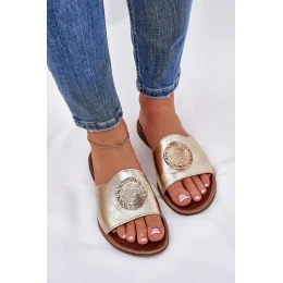 Zazoo 2938 Kožené Pantofle Na Plochém Podpatku S Ozdobou Zlaté