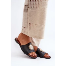 Zazoo 2938 Kožené Žabky Na Ploché Podrážce S Ozdobou Černé